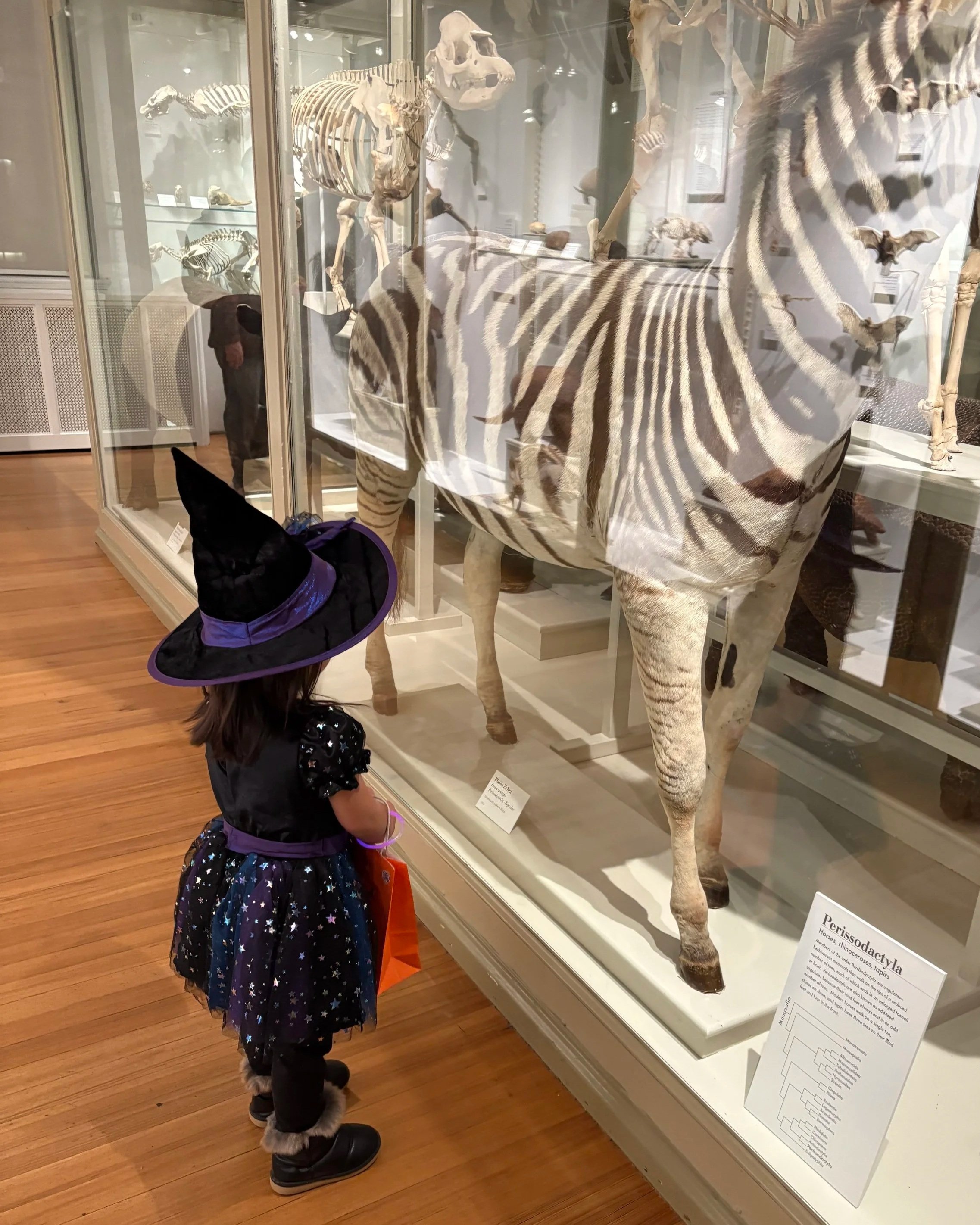 Z enjoying some exhibits at the Harvard Museum of Natural History during a Halloween event